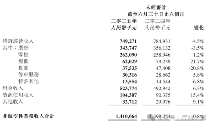 我们所熟知的与免税、广告相关的特许经营收入这块,2025年上半年,首都机场7.49亿元,比去年上半年还少了3500万元。