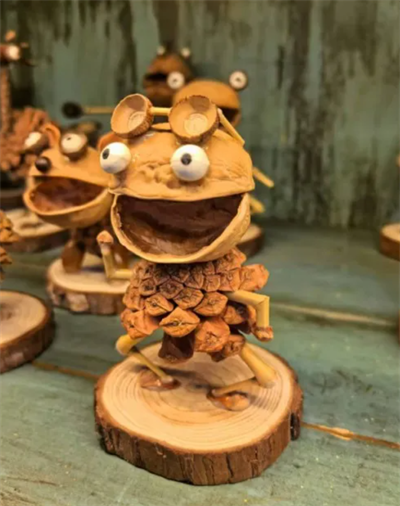 造物之美,藏在乡村的“小物件”里,是东方美学“以小见大”的智慧。在篁岭用本地的松果、树枝制作而成的冰箱贴,虽也不便宜,却让人心甘情愿购买——因为每一个都是独一无二的,带着山林的气息,能唤起游客对自然的记忆。我曾在篁岭买过一个用核桃皮和松果做的大笑娃娃,放在办公室,累的时候看到它开怀的样子,就觉得“世界还是美好的”,这就是造物之美叠加的“情绪价值”。