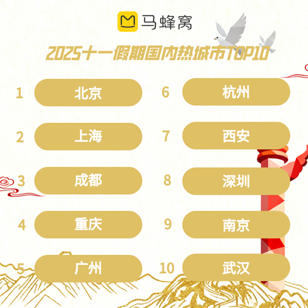 十一加中秋的八天假期临近尾声,马蜂窝大数据显示,游客的长线及出境游需求在长假得到充分释放,家庭亲子客群以近52.4%的占比领跑十一出行大军。在交通方式的选择上,高铁凭借其便捷性和价格的稳定性,成为假期游客最青睐的公共交通方式,国内铁路客运量再创新高。北京、上海、广州、成都、重庆等大城市周边的“三小时高铁圈”目的地成为游客灵活出行的目标。