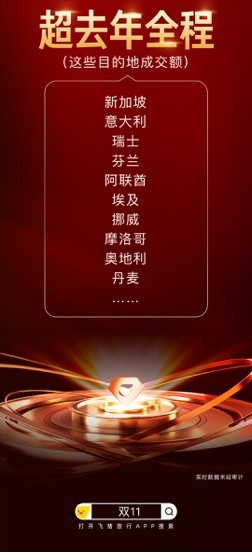 据商家透露,飞猪双11开门红,第二批尖货也在紧锣密鼓地筹备上线中。飞猪方面表示,接下来包括北京环球度假区、皇家加勒比邮轮、中国南方航空、国泰航空等大牌的爆款商品还将陆续上线。
