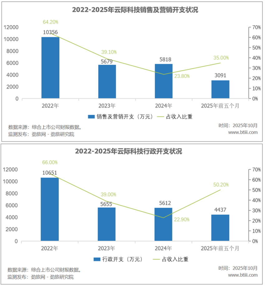 此外,云际科技销售成本为0.53亿元,占收入60.50%。研发开支为2498万元,占营业收入28.20%。销售及营销开支3091万元,占收入35%。行政开支4437万元,占收入50.20%。