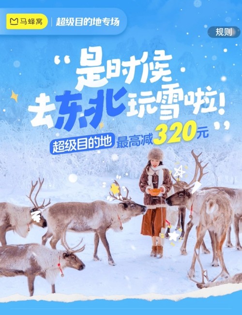 为丰富游客冬季出行选择,马蜂窝针对东北这一率先进入旅游旺季的区域,推出“超级目的地”专场活动。该专题不仅提供实用的冬季东北旅行攻略、专属优惠券和精选旅游产品,还整合了漠河追极光、“流放宁古塔”历史体验、沉浸感受少数民族习俗、冰上捕鱼、雪地温泉、魔界漂流等一系列新奇玩法,为年轻游客打造沉浸式、多样化的冬季旅行场景。