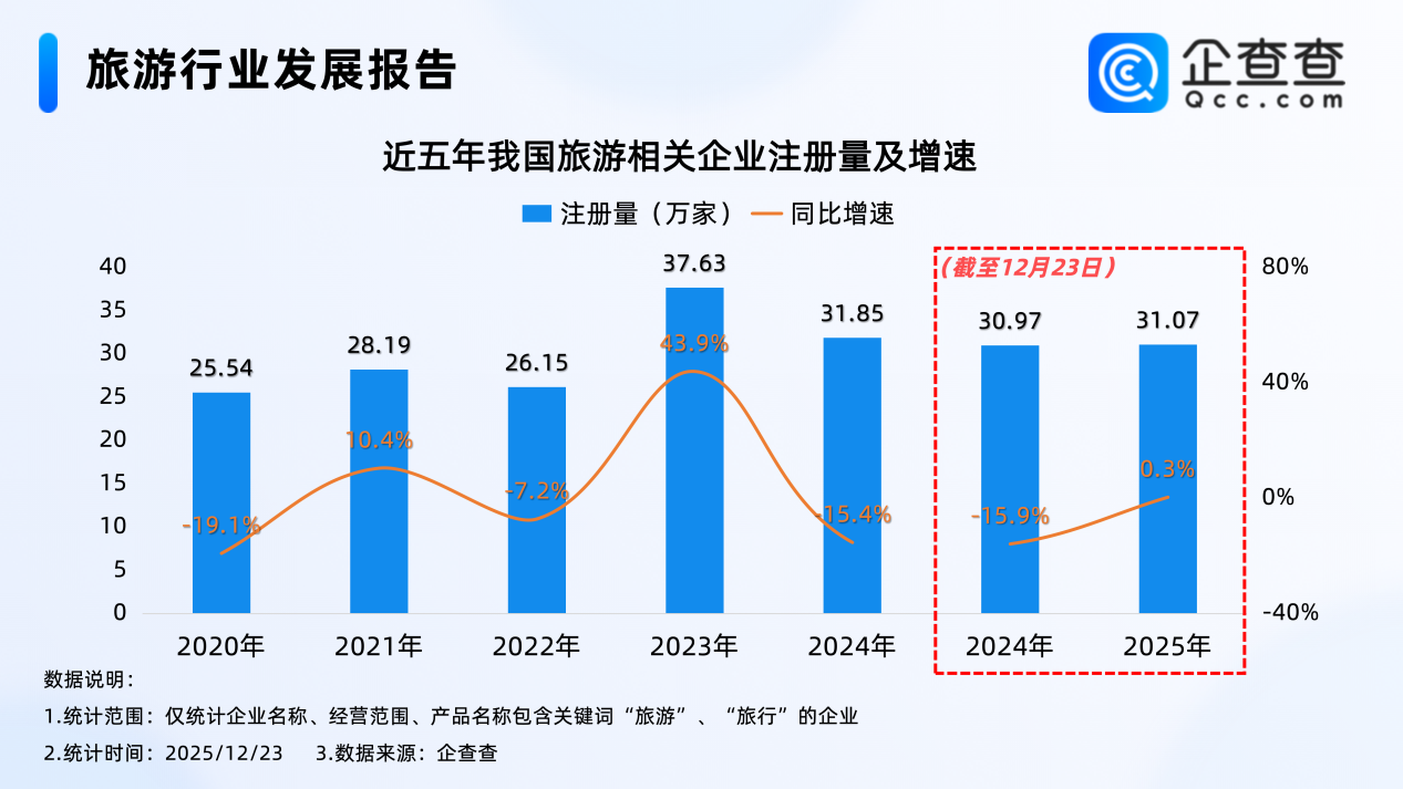 1.从注册量来看:2025年已注册31万余家旅游相关企业