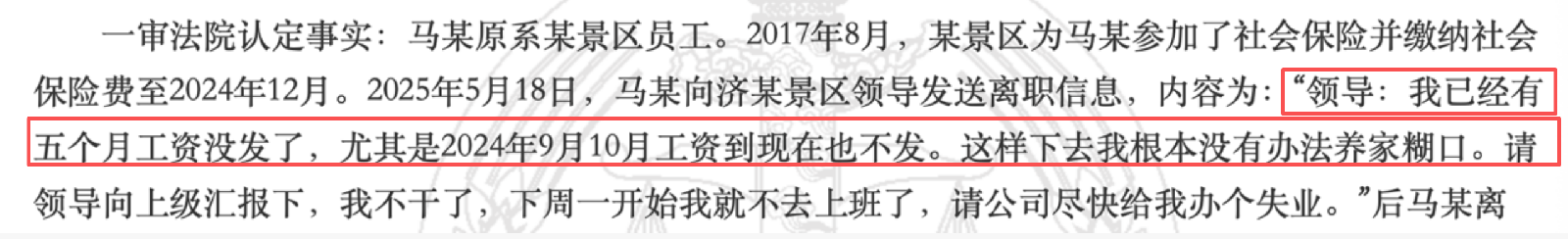 法院判决书显示,该景区至少从2024年下半年就开始拖欠员工工资。