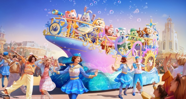在标志性的“米奇童话专列”驶来之前,全新萌趣洋溢的“‘友谊号’:达菲和朋友们的特别巡游”将率先登场。花车以璀璨的金色帆船为造型,车身绘有灵动的海浪纹样与望远镜等精巧细节,在温暖、欢乐与友谊的美好氛围中,为整场巡游拉开奇妙序幕。七位达菲和朋友们都将身着缤纷绚丽的庆典新装亮相,并邀请幸运游客加入巡游,在欢声笑语与惊喜交织的旅程中,共同创造珍贵瞬间。