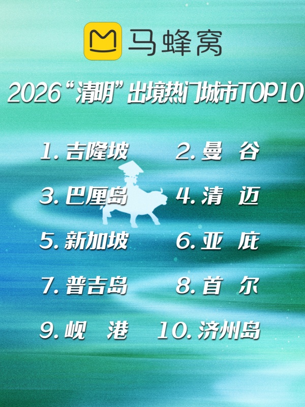 出境游方面,免签目的地主导清明“追春”潮流。吉隆坡、曼谷、巴厘岛、清迈、新加坡、亚庇、普吉岛、首尔、岘港、济州岛位列热门目的地前十。东南亚目的地凭借温暖气候与性价比优势,占据榜单大半壁江山。马来西亚因相对较低的物价,通过拼长假玩转“吉隆坡+槟城”双城成为打工人热门选择,相关攻略热度环比增长230%;曼谷、清迈的“寺庙祈福+春日市集”组合,吸引大批年轻游客,免签政策加持下预订量同比上涨176%。