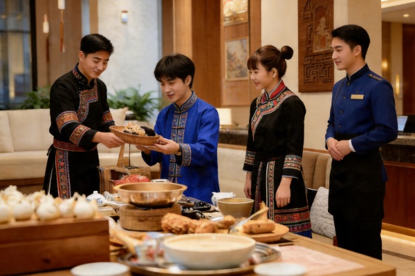 一方面,酒店联系当地的侗族村寨,打通当地新鲜农副产品直供渠道,在酒店早餐时设立侗族特色美食专区,将其打造成一个宣传亮点。